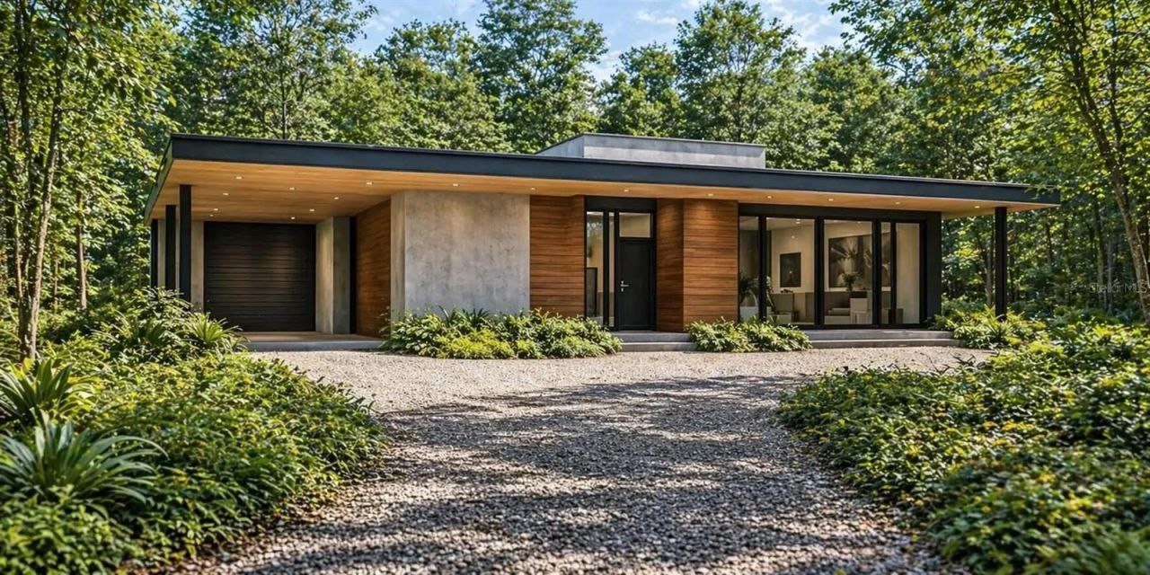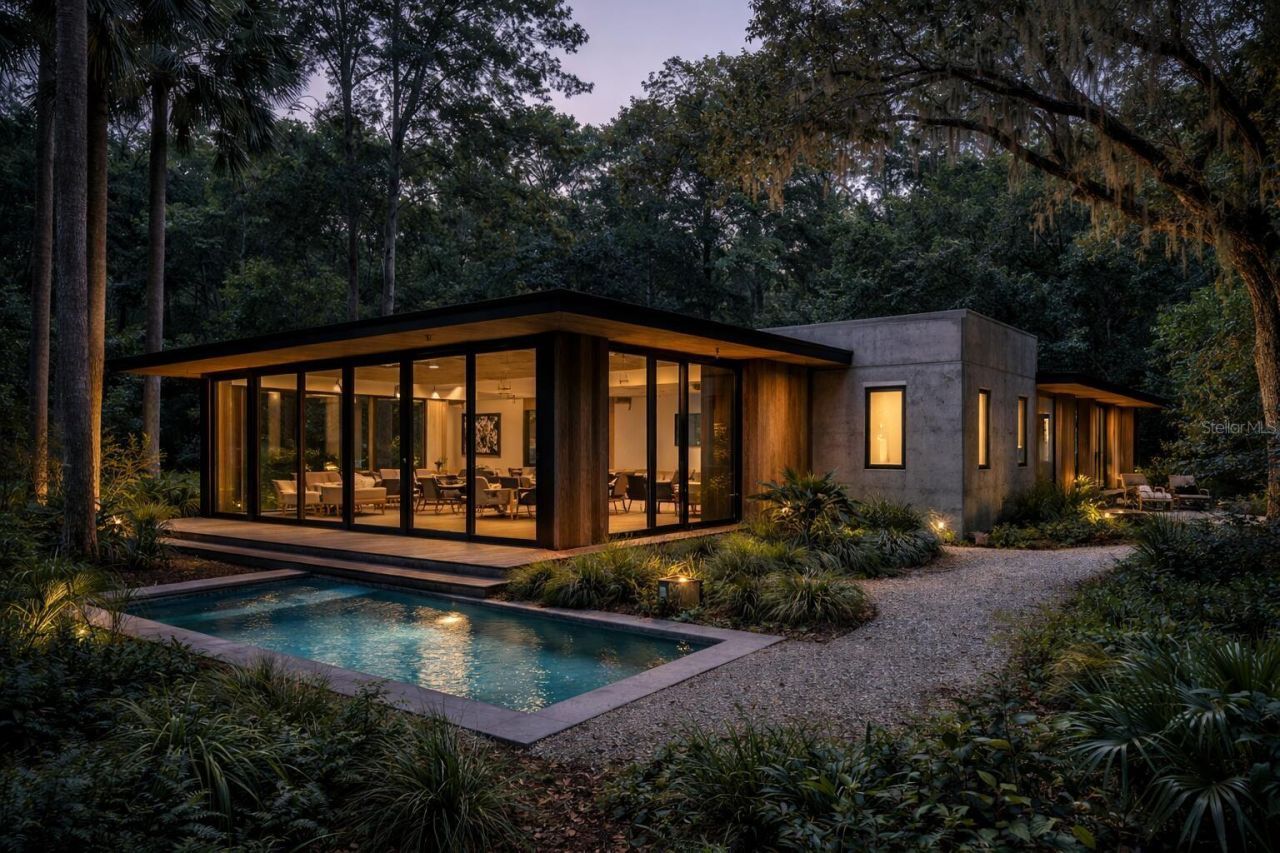 Under Construction. Refined in response to strong demand for the hybrid concept, this design now features an expanded layout with enhanced indoor-outdoor living and greater flexibility.Thoughtfully designed as a modern retreat, the Hybrid emphasizes light, flow, and connection to its natural surroundings. The concept allows for approximately 1,200-1,500 sq ft of living space, with adaptable configurations to suit a range of lifestyles-from full-time residence to seasonal retreat or investment property.Clean architectural lines, durable materials, and expansive impact-rated glazing create a seamless transition between interior and exterior spaces, bringing natural light throughout while framing the surrounding wooded landscape. Outdoor living remains a central focus, with the potential for integrated decks, terraces, and private exterior spaces.Located in Georgetown Cove near Lake George, this property provides privacy, access to nature, and convenient reach to both Florida coasts-well suited for a modern home designed around how you want to live.The original container concept remains available for other locations. This site is now aligned with the updated Hybrid design direction.
